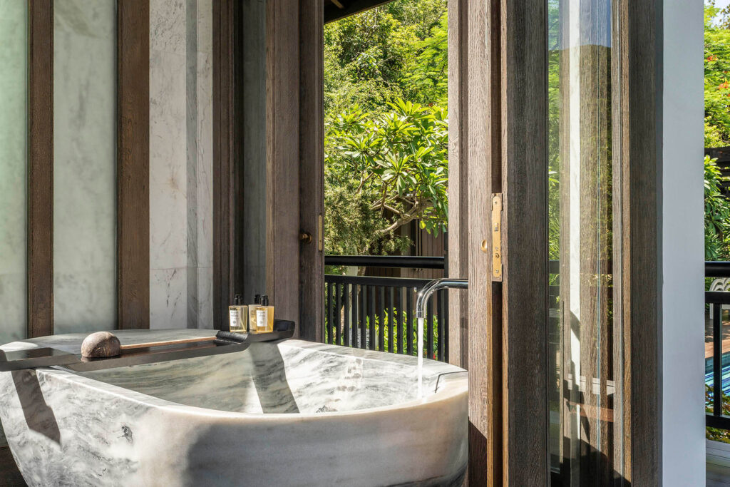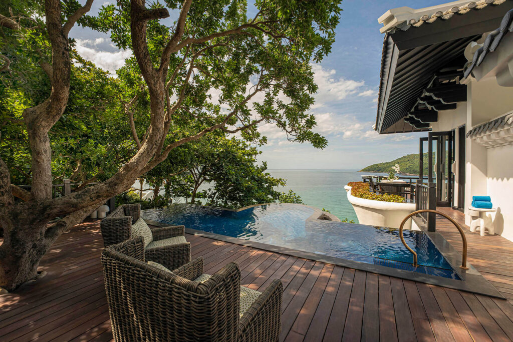 - Các biệt thự từ 1 đến 3 phòng ngủ được thiết kế với hồ bơi riêng, bồn ngâm riêng, khu vực tắm vòi sen ngoài trời và không gian mở rộng rãi với tầm nhìn ngoạn mục toàn cảnh bán đảo Sơn Trà.