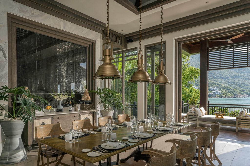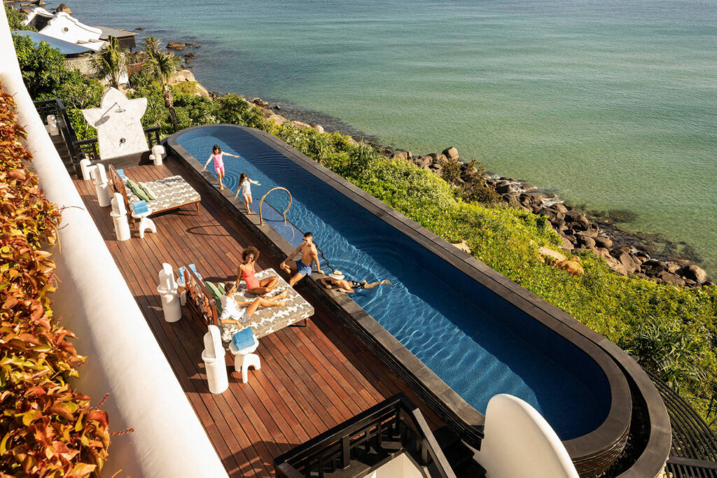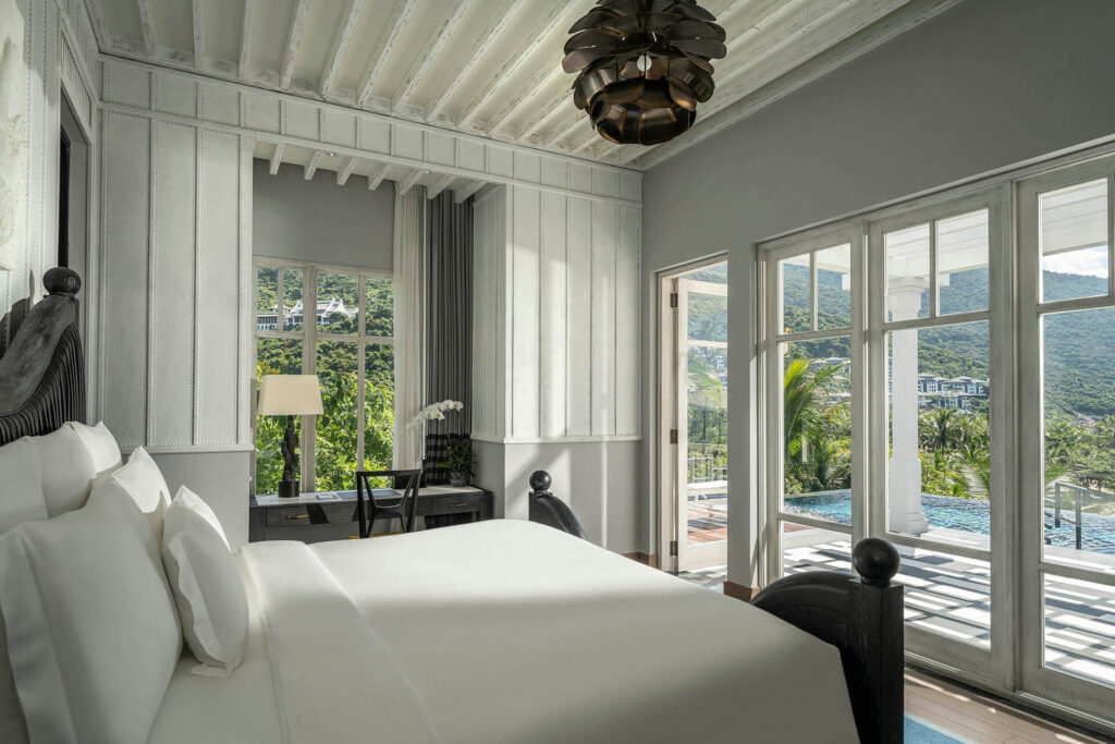 14. Biệt thự Hồ bơi bốn phòng ngủ: Biệt thự Hồ bơi với bốn phòng ngủ riêng biệt là lựa chọn nghỉ dưỡng riêng tư hoàn hảo cho kỳ nghỉ của đại gia đình hoặc những sự kiện kỉ niệm, sum họp với bạn bè. Dành trọn thời gian bên nhau với không gian sang trọng bên trong Biệt thự hoặc tổ chức một bữa tiệc tại bàn ăn rộng lớn ngoài trời, thư giãn và tắm nắng tại một trong ba hồ bơi, hay chỉ đơn giản là ngắm nhìn cảnh quan ngoạn mục của toàn Bán đảo Sơn Trà. Mỗi khoảnh khắc nghỉ dưỡng của bạn được hoàn thiện và chăm sóc bởi đội ngũ Quản gia chuyên nghiệp.