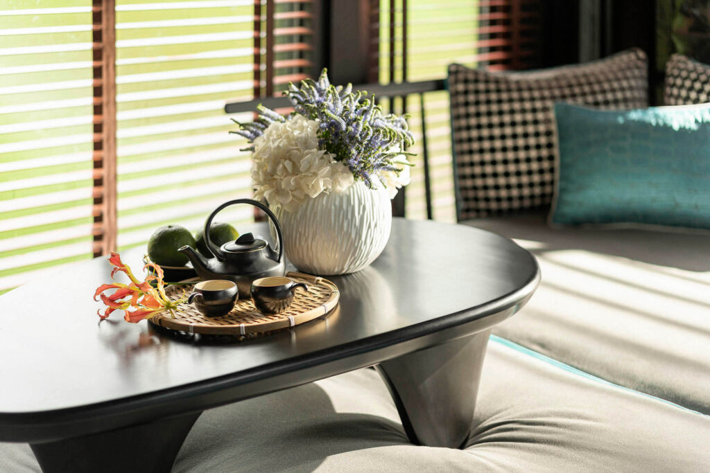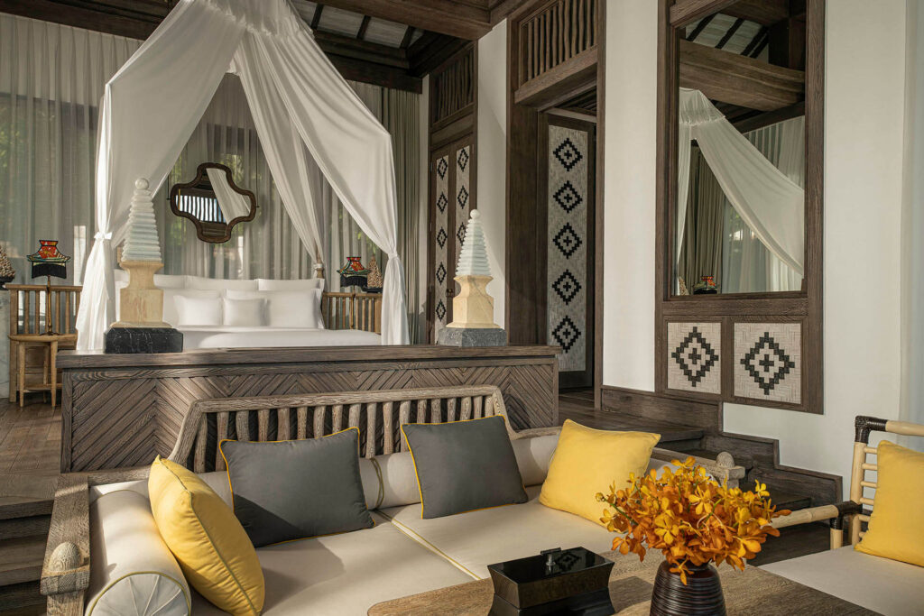 Tận hưởng không gian nghỉ dưỡng độc đáo với lối thiết kế là sự kết hợp hoàn hảo giữa văn hóa truyền thống Việt và phong cách đương đại trong căn phòng rộng 72m2.