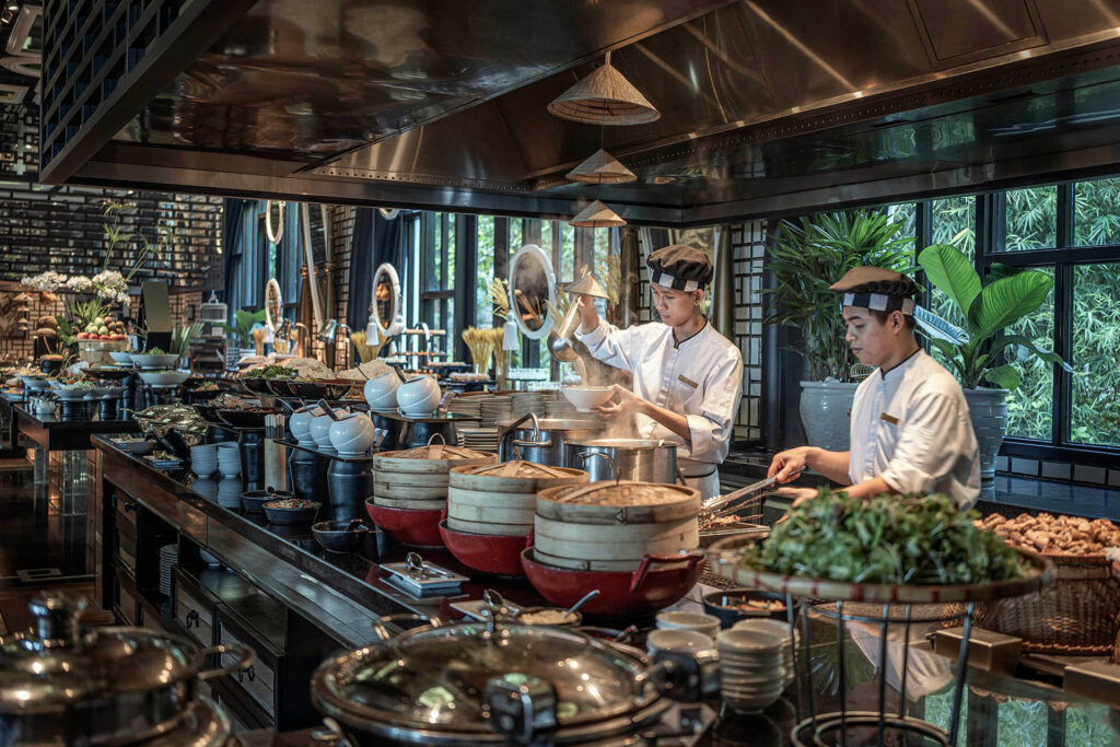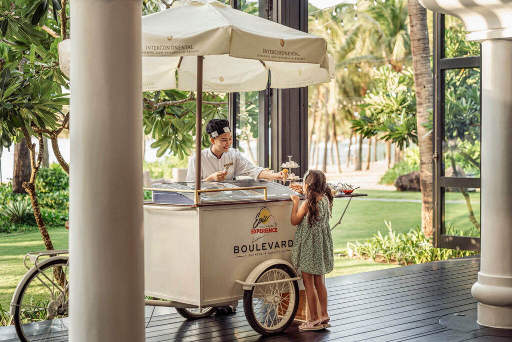 Kiến trúc sư Bill Bensley tạo nên sự kết hợp đặc trưng của kiến trúc bản địa, phong cách trang trí có độ tương phản cao cùng những điểm nhấn vui tươi, có ý nghĩa trong từng thiết kế của không gian trong nhà và ngoài trời. Xuyên suốt toàn bộ Khu nghỉ dưỡng, Quý khách sẽ tìm thấy vô số đồ nội thất được lấy cảm hứng từ Pháp và Việt Nam, nội và ngoại thất được chế tác tinh xảo cùng tác phẩm nghệ thuật gốc tạo nên ấn tượng ngạc nhiên và thích thú. InterContinental Danang Sun Peninsula Resort cũng vinh dự giới thiệu bếp trưởng đầu tiên của Việt Nam tại nhà hàng La Maison 1888, được trao sao Michelin, Pierre Gagnaire. Những khu vực phục vụ ẩm thực và giải trí đặc biệt khiến InterContinental Danang Sun Peninsula Resort trở thành điểm đến chính cho các chuyến tham quan trong ngày, hội họp hay nghỉ dưỡng với gia đình và bạn bè.