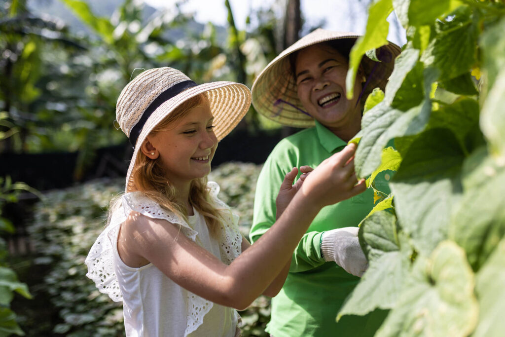 - Quý khách cũng có dịp thử sức mình bằng cách tự tay chèo thuyền thúng Việt Nam truyền thống, một hoạt động trải nghiệm đầy thử thách và thú vị cho cả gia đình.