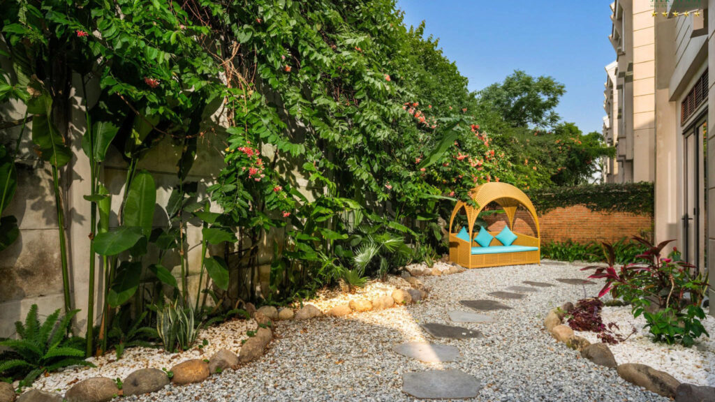 Các chi tiết đều được chăm chút và sắp đặt có chủ ý, để thiên nhiên không hiện diện như thể một yếu tố ngoại cảnh, mà thực sự len lỏi vào mọi không gian, khoảnh khắc – từ ánh nắng xuyên qua tán lá buổi sáng đến âm thanh khẽ khàng của nước và gió khi chiều buông, trở thành một phần không thể tách rời của trải nghiệm sống nơi đây.