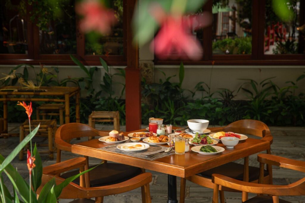 Dưới bàn tay khéo léo của các đầu bếp, những nguyên liệu giản dị ấy được nâng tầm thành những trải nghiệm ẩm thực hài hòa giữa truyền thống và hiện đại. Thực đơn đa dạng, từ những món Việt đậm đà bản sắc đến các lựa chọn quốc tế, đáp ứng nhiều khẩu vị khác nhau.