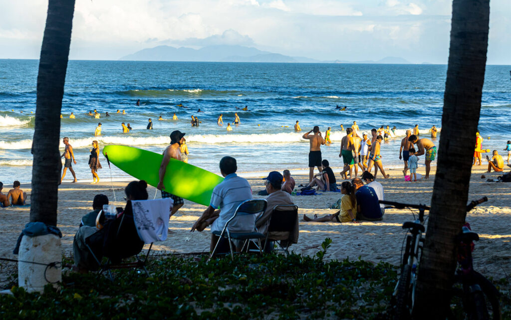 According to observations, during the transition between seasons, My Khe Beach regularly attracts a large number of visitors, especially in the late afternoon when locals and tourists take advantage of the cooler weather to swim and relax after their daily activities.