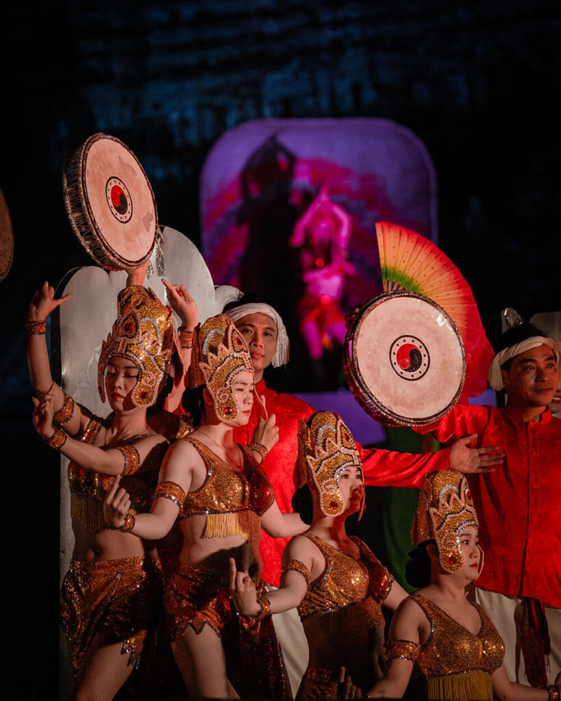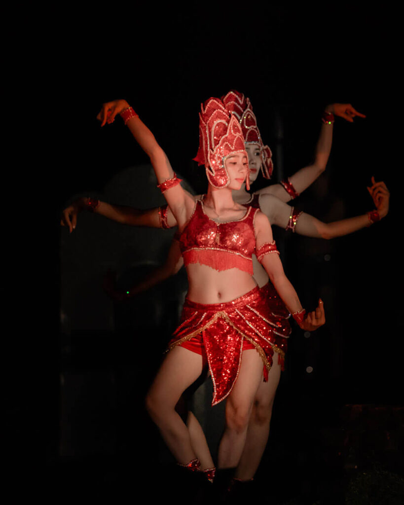 Những vũ nữ Apsara xuất hiện với điệu múa thanh thoát gợi nhắc truyền thuyết Ấn Độ, nơi họ sinh ra từ những bột sóng biển trong trận chiến của thần Siva.