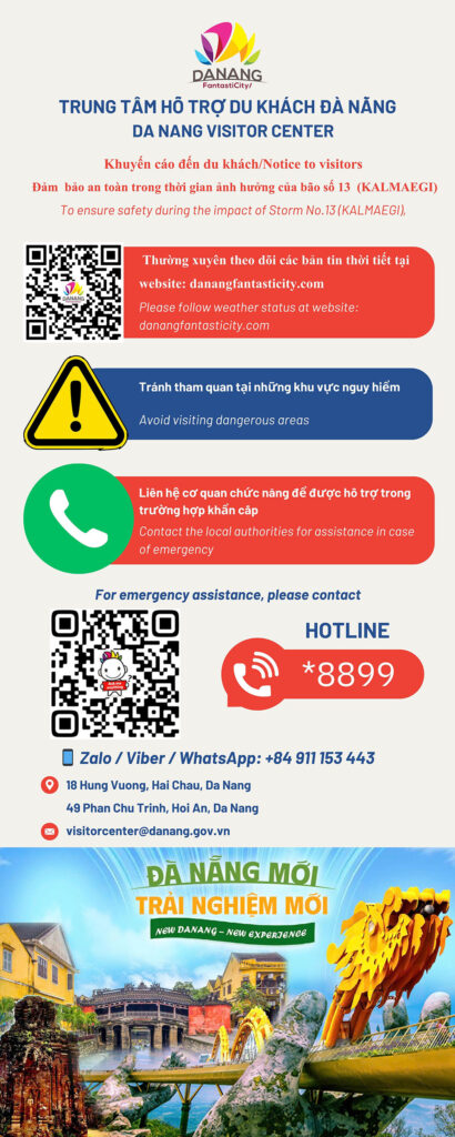 To ensure safety during the impact of Typhoon No.13, the Da Nang Visitor Support Center advises all visitors: