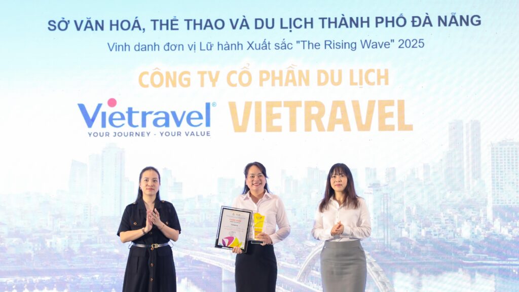 For the first time, the Department of Culture, Sports and Tourism of Da Nang announced the “MICE – The Rising Wave” award to honor businesses with outstanding contributions to attracting MICE visitors in 2025. Awardees are recognized as “leading waves,” pioneers in market connection, supporting the city’s MICE initiatives, and successfully organizing MICE groups that bring high-quality visitors to Da Nang. The five exemplary businesses honored include: