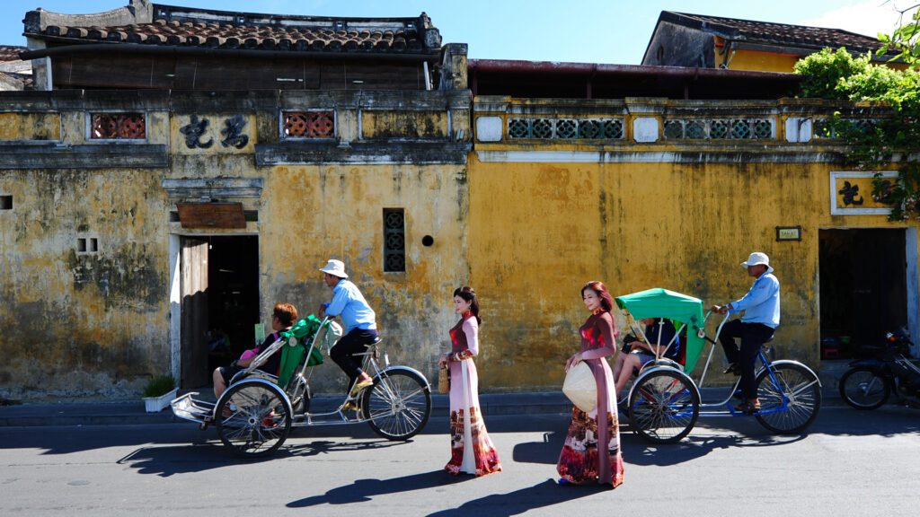 From APEC Park and the western bank of Dragon Bridge to Bach Dang walking street, Nguyen Van Troi Bridge, Son Tra night street, and riverside spaces along the Han River, the image of the ao dai becomes part of the city’s everyday rhythm. This journey continues toward Hoi An, where the Hoai River and the ancient town provide a heritage backdrop for deeper cultural encounters.