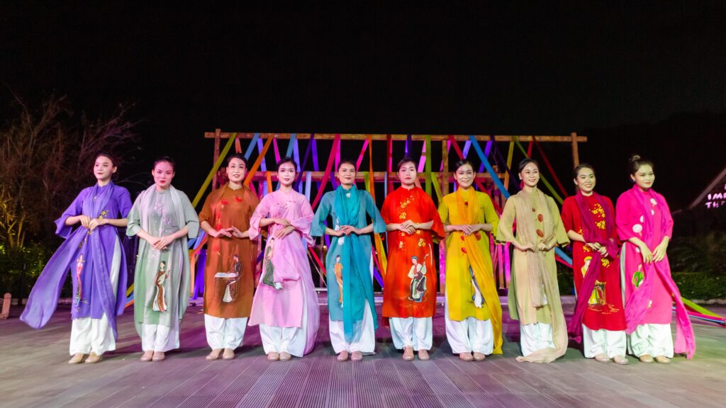 Over the course of 90 minutes, the program begins with grand artistic performances combining contemporary folk dance and music, recreating the evolution of the ao dai through time. Light, technology, and stage artistry come together to create a performance space where the ao dai is not only seen, but felt as a living cultural flow.