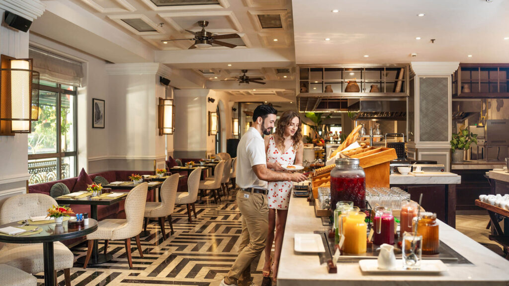 - Faifo Café – an all-day dining restaurant serving a generous international breakfast buffet with a harmonious blend of Asian and Western flavors, alongside curated lunch and dinner menus. Guests may choose between the elegant indoor setting or an airy outdoor space overlooking the old town.