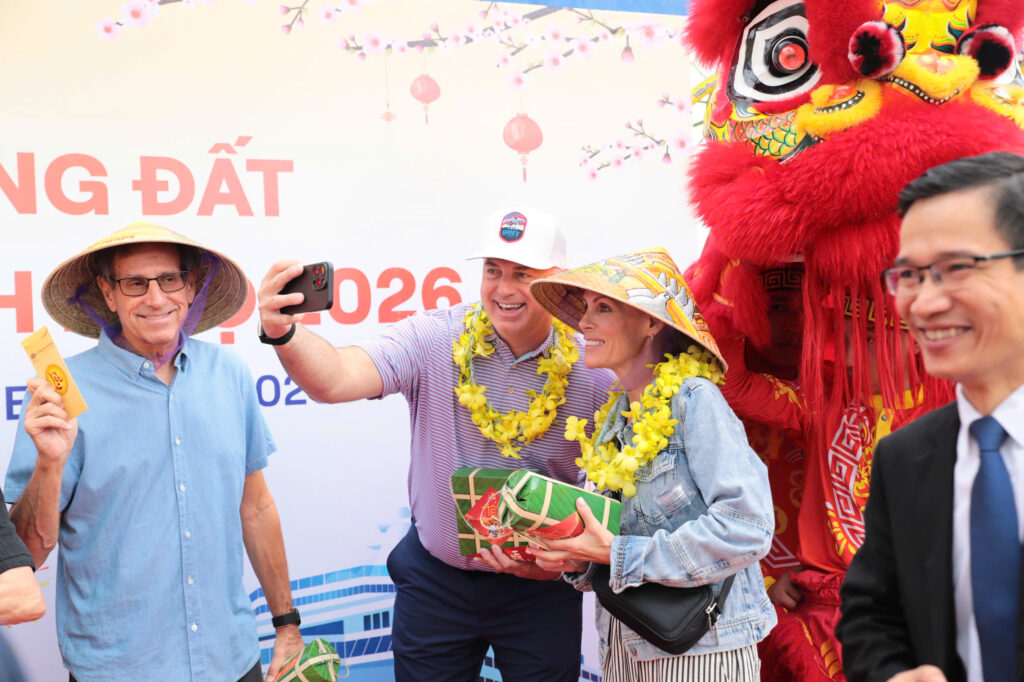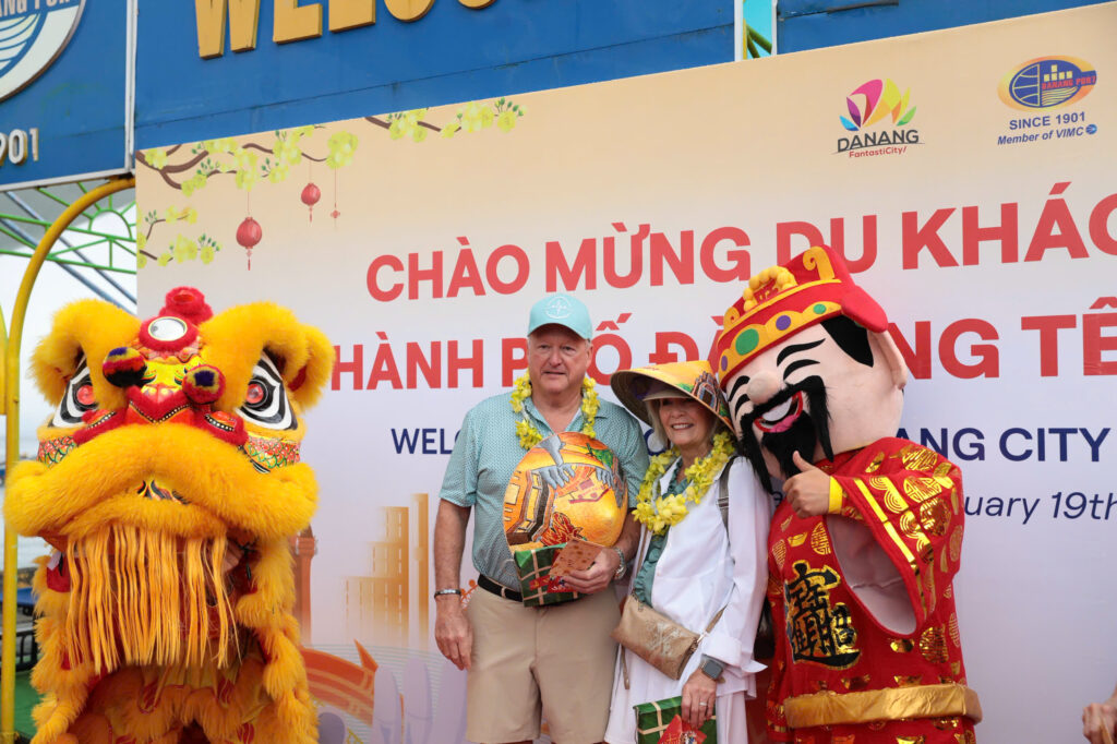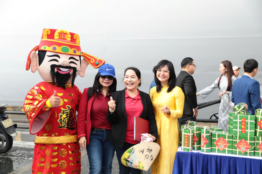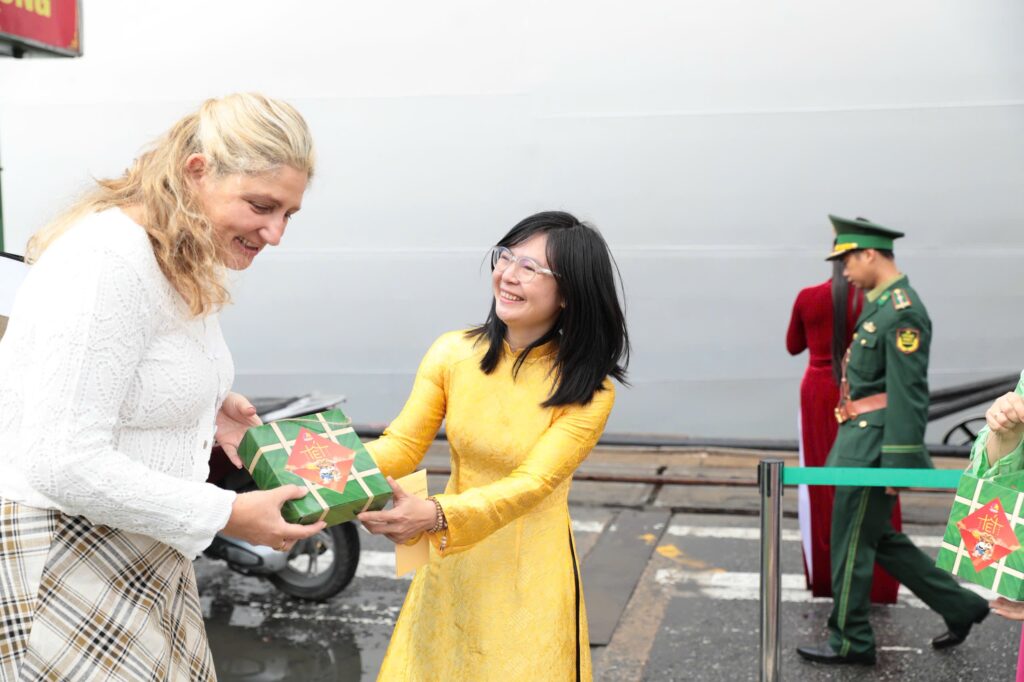 In welcoming the international cruise delegation, Da Nang offered not only a festive atmosphere with lion dances and souvenirs, but also introduced traditional Tet cultural elements through conical hats and gift boxes featuring banh chung and banh tet—symbolic delicacies of Vietnamese Lunar New Year.