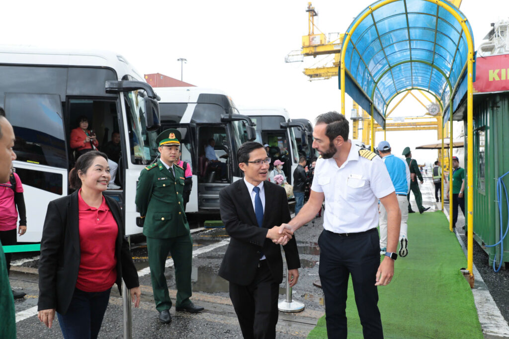 The vessel carried more than 1,000 people, including 580 tourists from key markets such as the United Kingdom, France, and the United States, along with 500 crew members. The ship docked at Tien Sa Port (Son Tra Ward) in the morning and departed at 6:00 PM the same day.