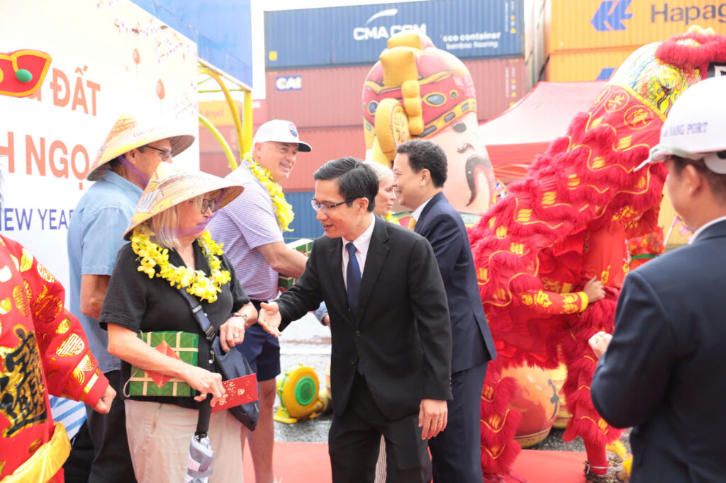 Chào đón đoàn khách tàu biển quốc tế, Đà Nẵng không chỉ mang đến không khí lễ hội rộn ràng với múa lân, quà tặng mà còn giới thiệu nét văn hóa Tết cổ truyền qua những chiếc nón lá và hộp quà bánh chưng, bánh tét….