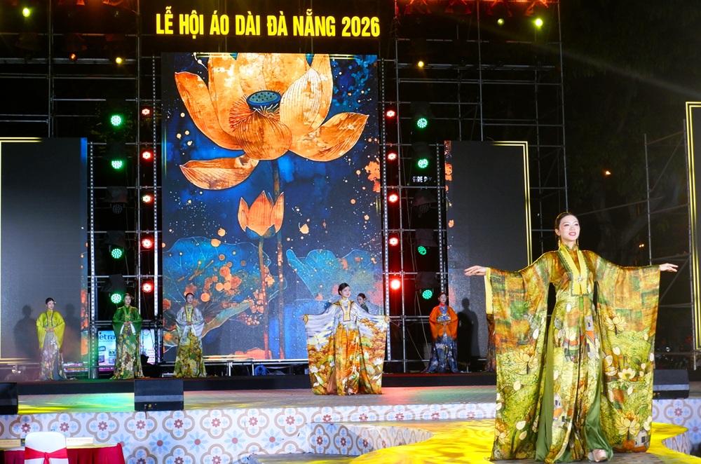 Trong khuôn khổ Lễ hội Áo dài Đà Nẵng năm 2026, tối 25-4, tại sân khấu 40 Bạch Đằng (phường Hải Châu), chương trình trình diễn áo dài kết hợp tọa đàm với chủ đề “Áo dài Việt Nam – Di sản và sáng tạo” diễn ra sôi nổi, thu hút đông đảo người dân và du khách.