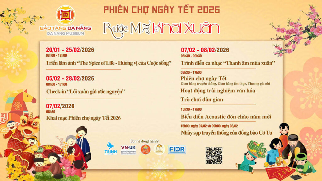 Ngoài chương trình Phiên chợ ngày Tết năm 2026, Bảo tàng Đà Nẵng còn tổ chức chương trình vui Xuân đón Tết Bính Ngọ 2026 tại Bảo tàng Đà Nẵng – Cơ sở 2 với đa dạng hoạt động, trải ngiệm chào đón năm mới, cụ thể: