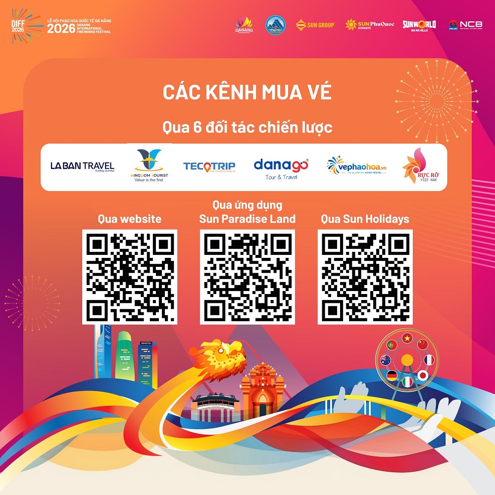Vé DIFF 2026 được phân phối qua nhiều kênh chính thức như website, ứng dụng Sun Paradise Land, Sun Holidays và các đối tác du lịch. Đây cũng là thời điểm lý tưởng để tận dụng chương trình ưu đãi Early Bird – cơ hội sở hữu vé sớm với mức giá hấp dẫn.