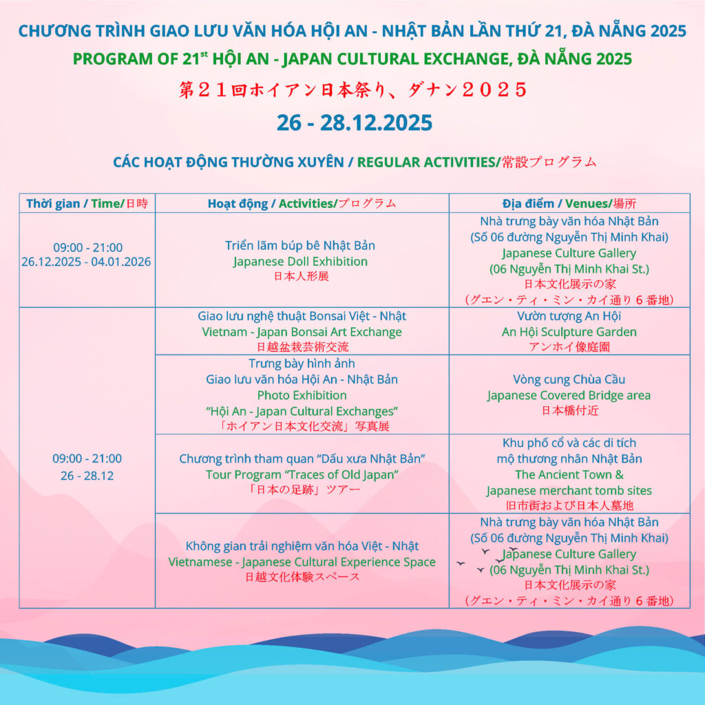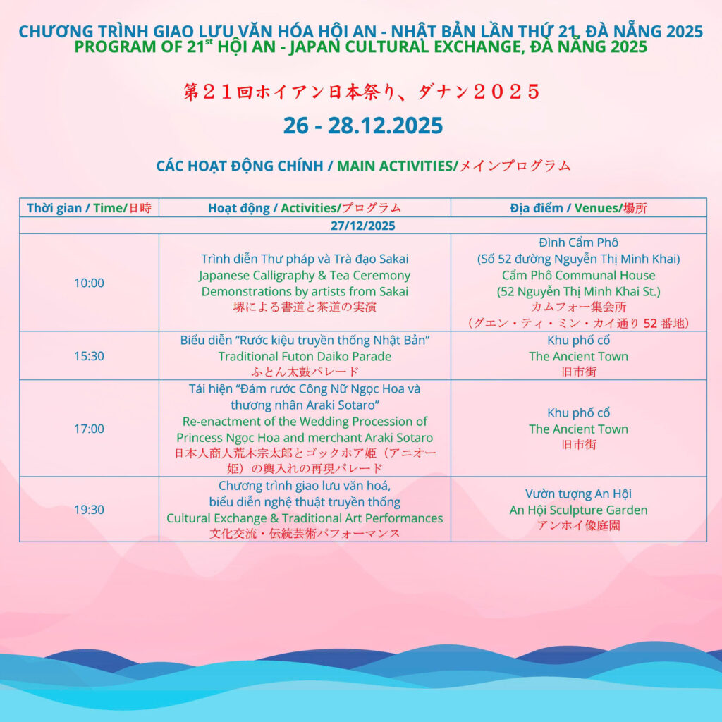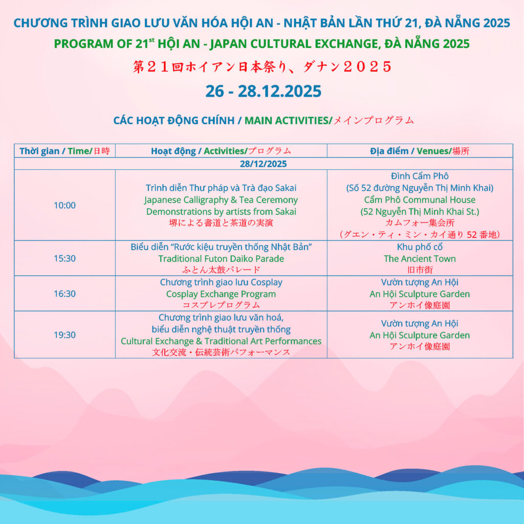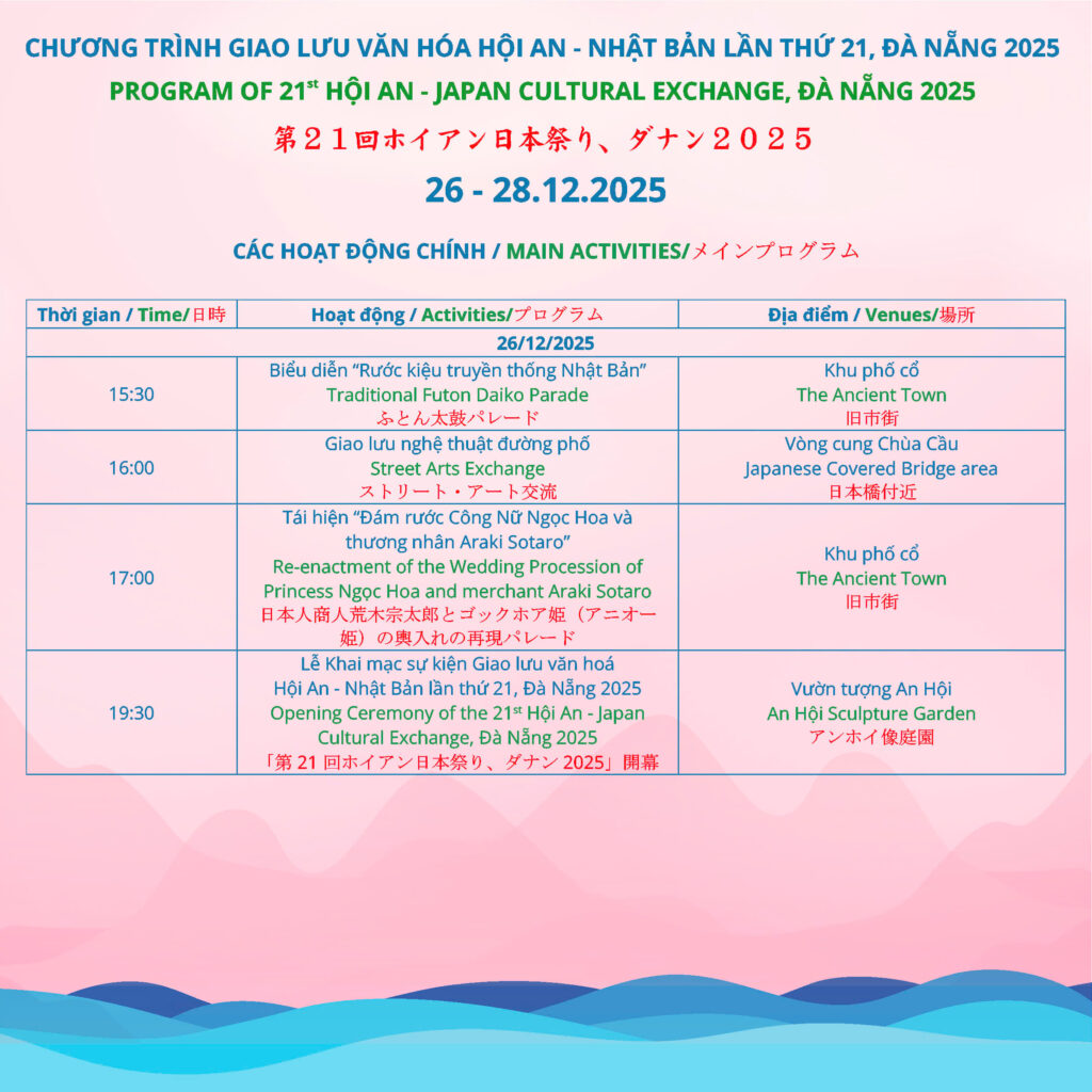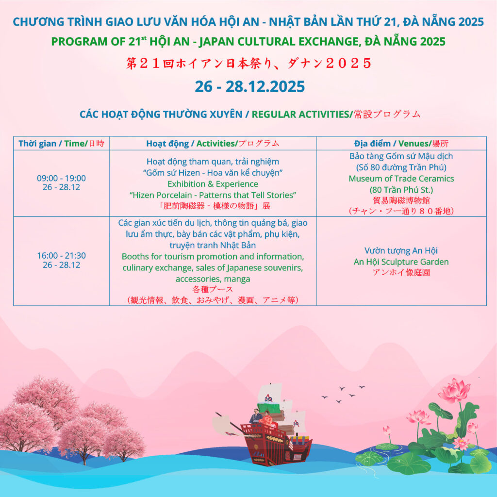 • Giao lưu văn hóa Hội An – Nhật Bản lần thứ 21 diễn ra từ 26 đến 28 tháng 12 năm 2025