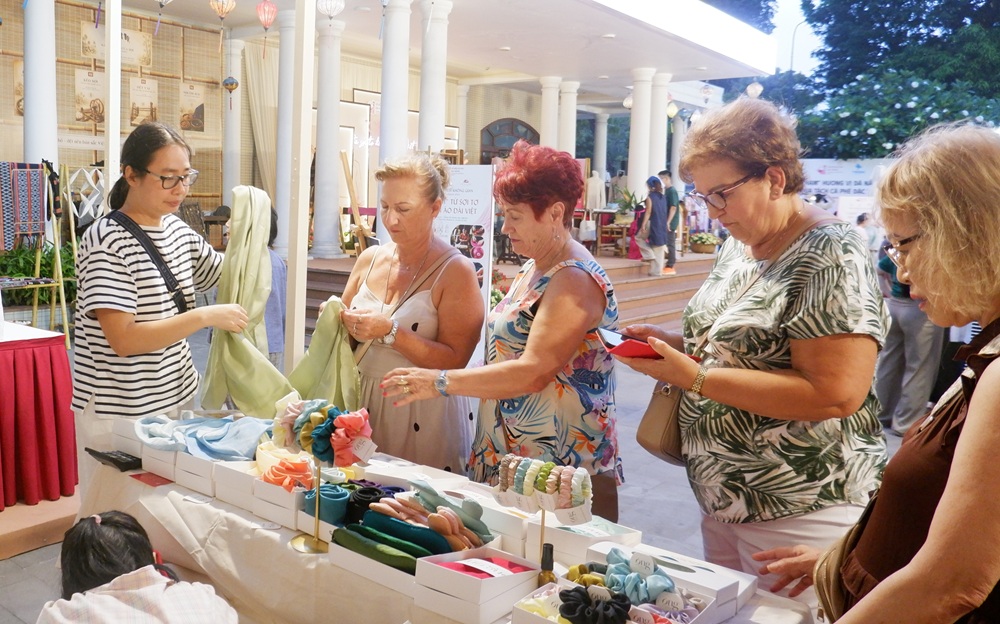 Du khách quốc tế thích thú cảm nhận nét tinh tế trong từng thớ lụa