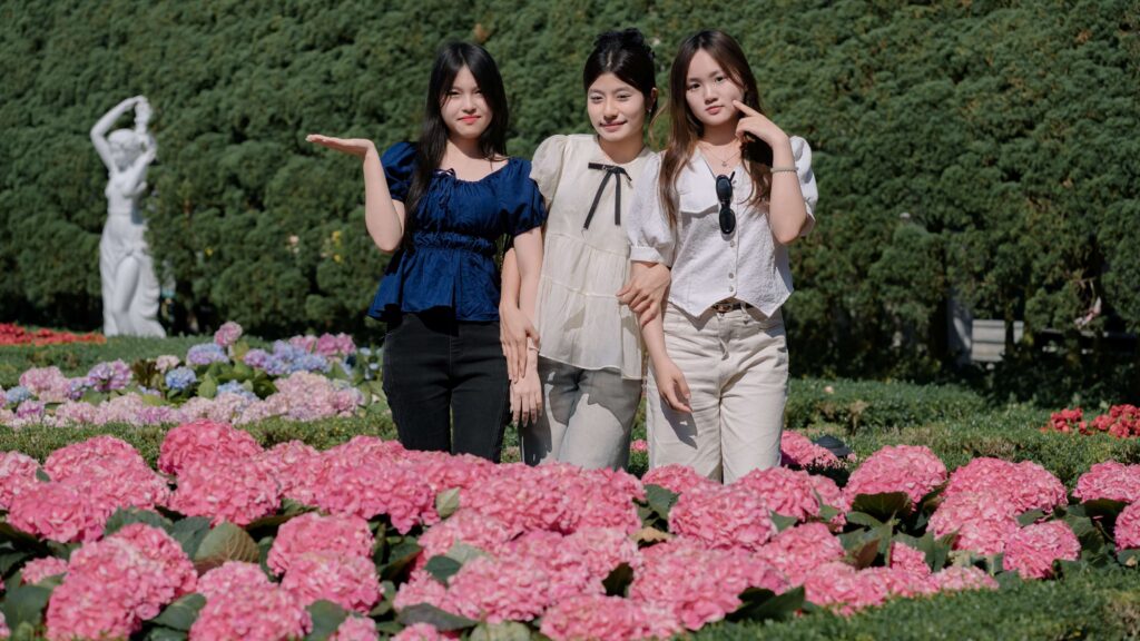 Check-in rạng rỡ bên thảm hoa Cẩm tú cầu rực rỡ tại vườn hoa Le Jardin D’Amour.