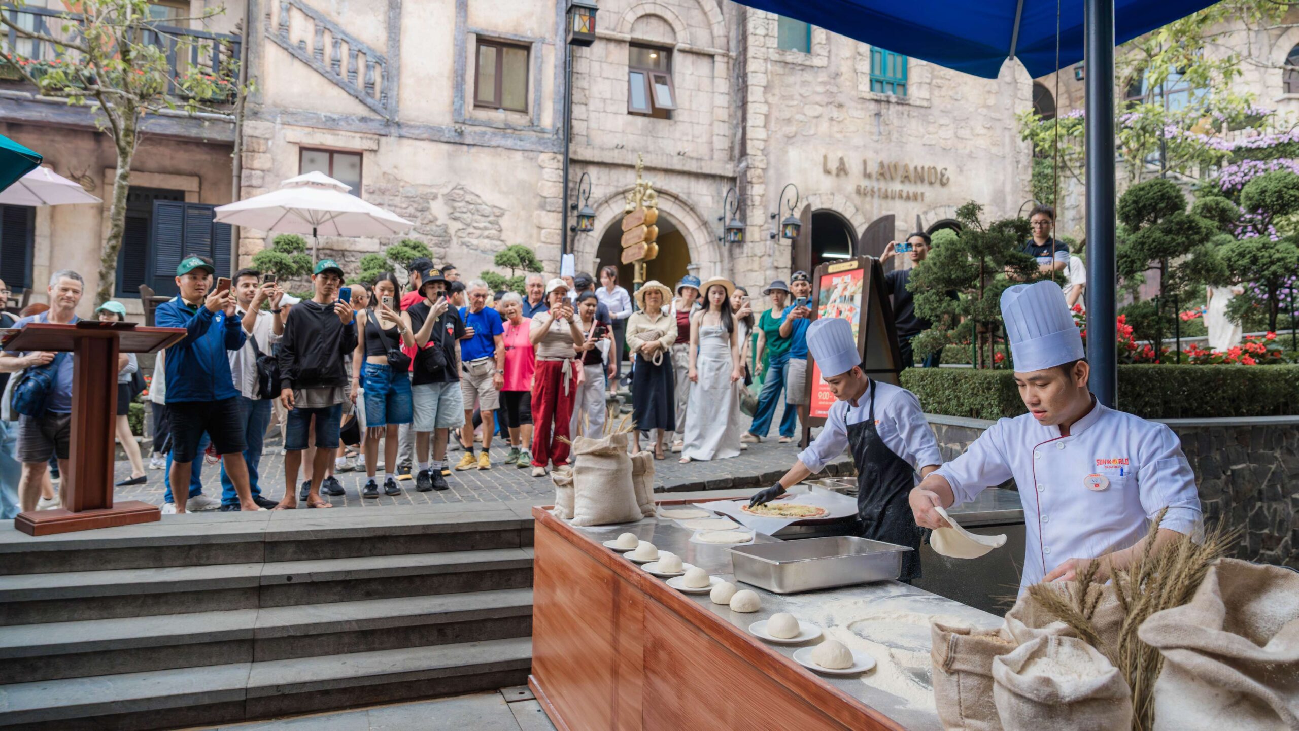 Ấn tượng nhất có lẽ là show trình diễn kỹ năng độc đáo lần đầu ra mắt, mang đến những trải nghiệm mới mẻ và đầy cảm xúc. Tại khu vực Nhà thờ và đài Bát Giác, show “Happy Cleaners Performance” gây bất ngờ khi đưa những “nghệ sĩ thầm lặng”, chính là đội ngũ nhân viên vệ sinh bước ra sân khấu. Từ những đạo cụ quen thuộc như chổi hay khăn lau, họ biến công việc thường nhật thành những vũ đạo vui nhộn, mang đến tiếng cười và nguồn năng lượng tích cực cho du khách. Trong khi đó, “Pizza Time” lại mang đến góc nhìn mới mẻ về trải nghiệm ẩm thực, khi căn bếp trở thành sân khấu biểu diễn. Tại nhà hàng Brasserie, du khách sẽ được chiêm ngưỡng những màn tung hứng đế bánh điêu luyện, nơi các đầu bếp biến từng công đoạn chế biến thành tiết mục trình diễn độc đáo.