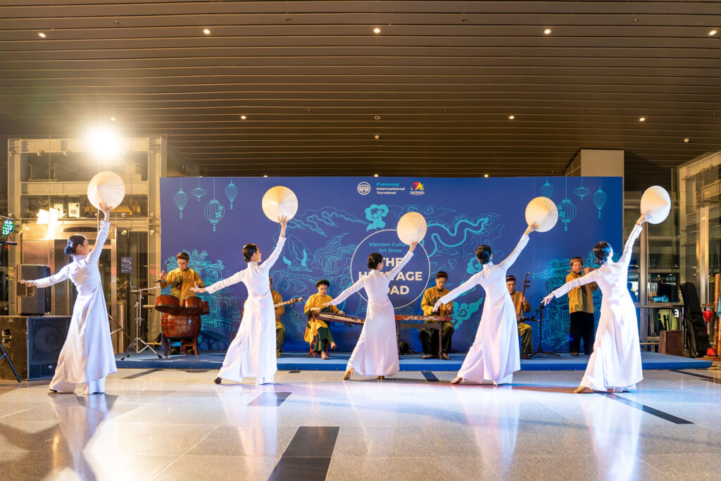Tiết mục trình diễn áo dài Việt Nam trong chương trình Con đường di sản, chương trình được biểu diễn hằng đêm tại ga đi