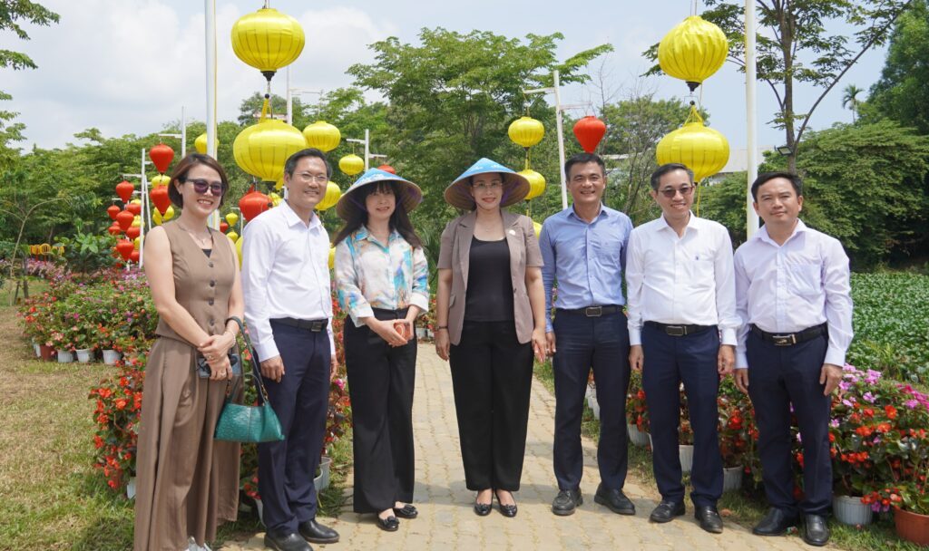 Phó Chủ tịch UBND thành phố Nguyễn Thị Anh Thi tham quan các điểm check-in tại vườn Cừa.