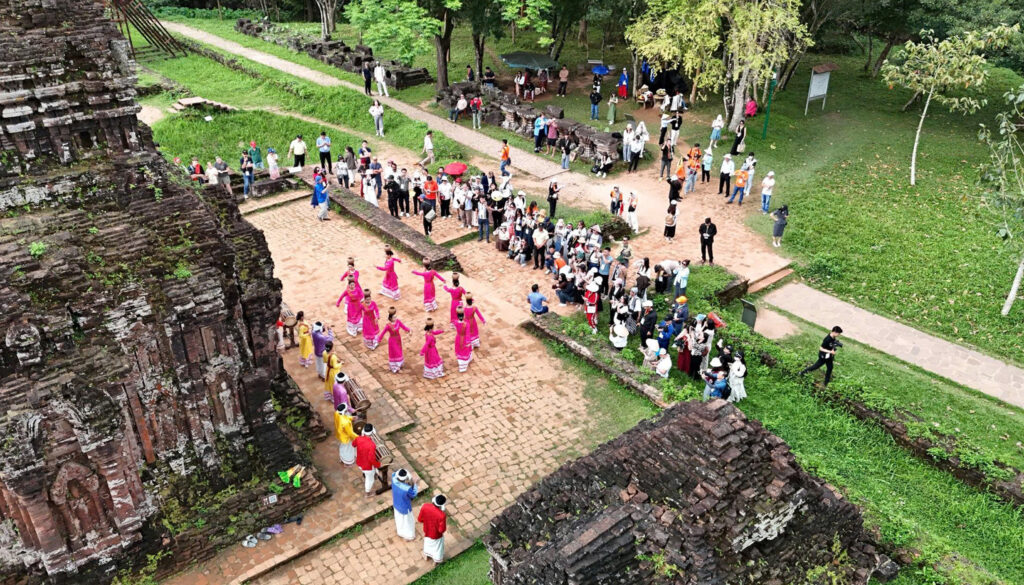 Khi những thanh âm truyền thống vang lên giữa các tháp cổ, không gian Mỹ Sơn như trở thành một sân khấu di sản sống động – nơi nghệ thuật, lịch sử và thiên nhiên cùng hòa quyện.