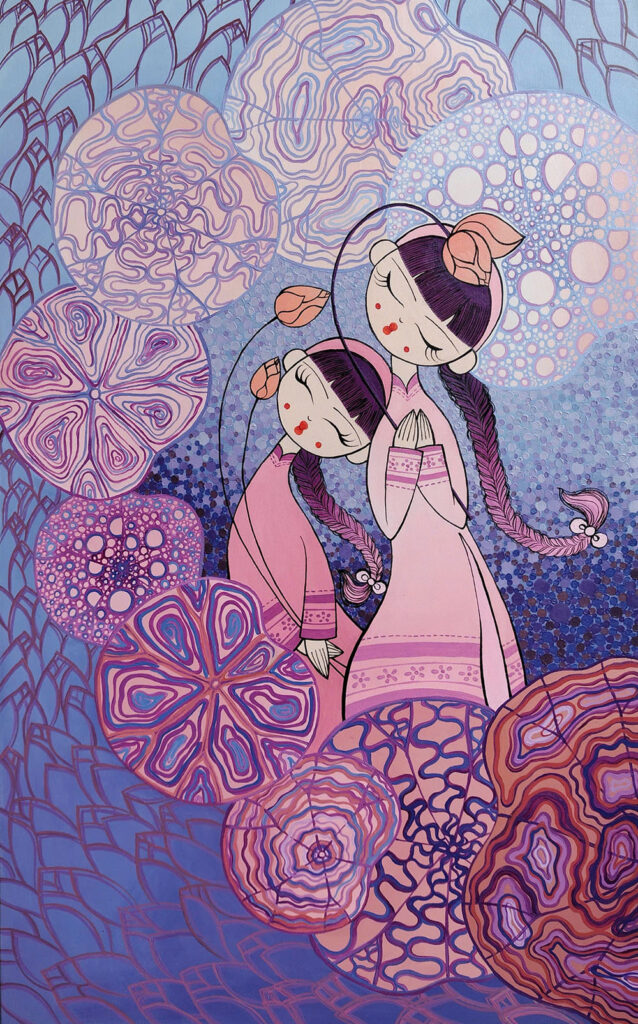 Lời nguyện trong sen – Lê Thị Ánh Nguyệt – Acrylic – 52 x 84
