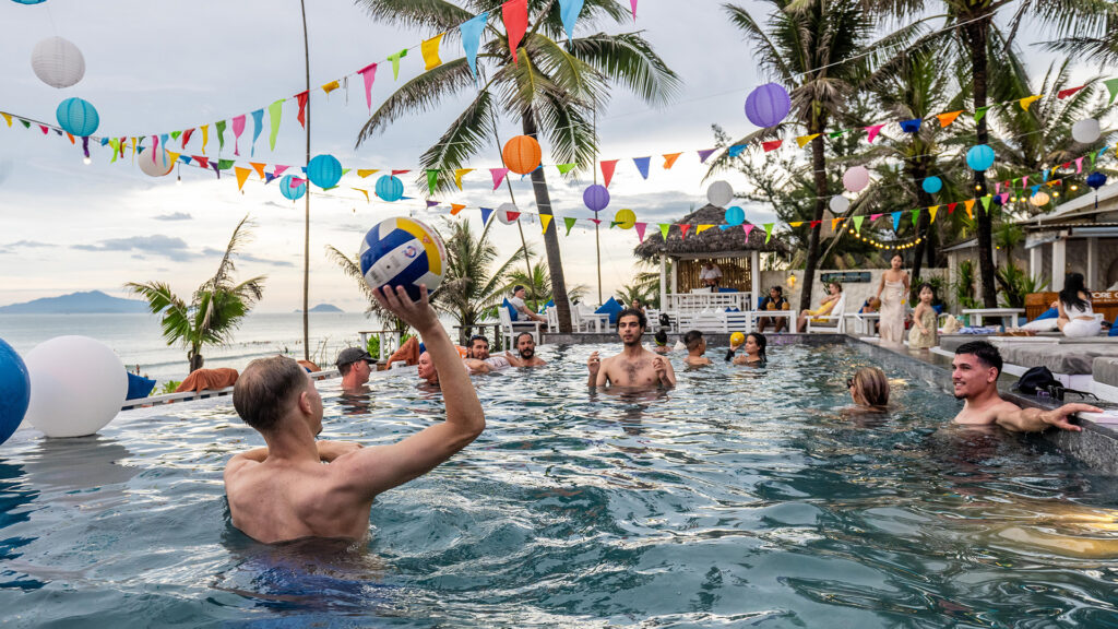 Tại An Bàng, bạn có thể bắt đầu bằng việc chọn một quán cà phê có tầm nhìn hướng ra biển và thưởng thức ly cà phê phin Việt Nam, nơi hương vị quen thuộc hòa vào không gian biển, mang lại cảm giác rất riêng của văn hóa địa phương. Từ không gian ấy, làn nước trong vắt trở thành lời mời gọi tự nhiên để bạn bơi lội, lặn xuống và cảm nhận sự mát lành của biển.