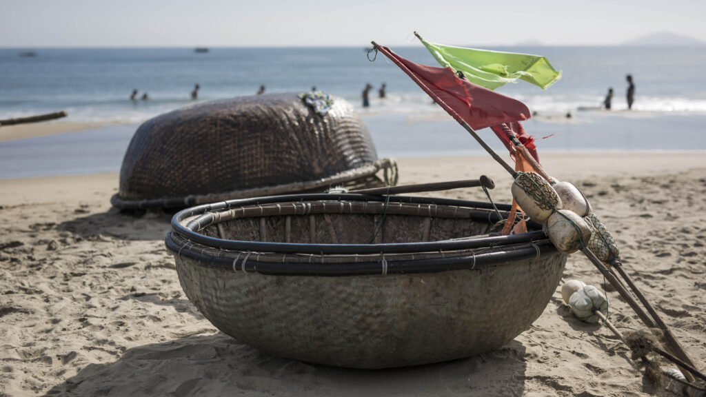 Giữa không gian ấy, đời sống của cộng đồng chài lưới vẫn hiện diện như một phần không thể tách rời. Khi mặt trời lên, hình ảnh những người ngư dân điều khiển thuyền thúng tre, những chuyển động quen thuộc của nhịp sống mưu sinh mang lại một chiều sâu rất riêng, khiến An Bàng không chỉ là một bãi biển, mà còn là một không gian sống – mộc mạc, chân thực và gần gũi.