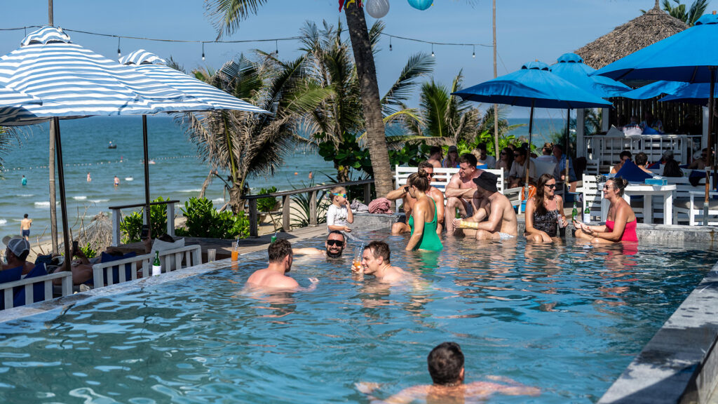 Dọc theo bờ biển, các quán café, nhà hàng và beach bar mang phong cách quốc tế xuất hiện một cách hài hòa, vừa mang lại sự tiện nghi, vừa không làm mất đi tinh thần bản địa. Xen giữa đó là các khu nghỉ dưỡng cao cấp cùng hệ thống dịch vụ đa dạng, tạo nên một tổng thể cân bằng – nơi trải nghiệm và nghỉ dưỡng cùng tồn tại một cách tự nhiên.