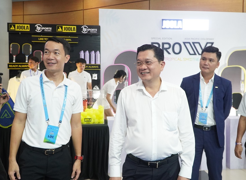 Phó Chủ tịch Thường trực HĐND thành phố, Chủ tịch Liên đoàn Pickleball thành phố Đà Nẵng Trần Phước Sơn tham quan các gian hàng triển lãm tại sự kiện