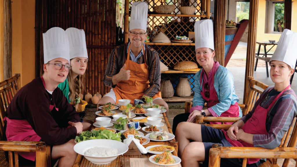 Tại làng rau Trà Quế, du khách có thể tham gia hành trình làm nông dân trong vài giờ – học cách trồng rau bằng phương pháp thủ công, chăm đất, tưới cây và thu hoạch những loại rau thơm đã nuôi dưỡng ẩm thực Hội An qua nhiều thế hệ. Sau những giờ làm vườn, trải nghiệm thường kết thúc bằng một lớp cooking class với những món ăn đặc trưng của vùng đất như bánh xèo, tam hữu, gỏi hoa chuối hay các món rau truyền thống.