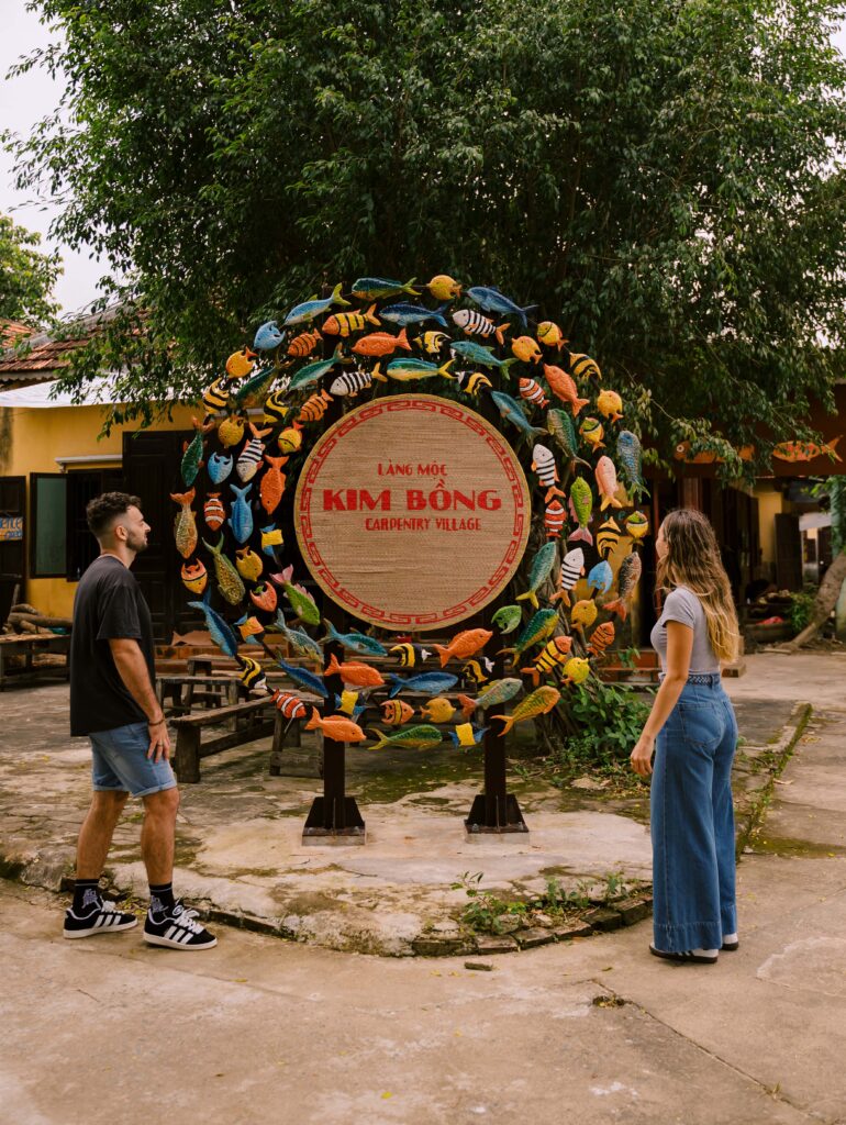 Ở làng mộc Kim Bồng, nghề mộc truyền thống vẫn được gìn giữ qua những người thợ làng. Du khách có thể tìm hiểu lịch sử làng nghề, quan sát các kỹ thuật chạm khắc gỗ và tham gia những công đoạn đơn giản như chà nhám, ghép mộng hay tạo ra một sản phẩm thủ công nhỏ.