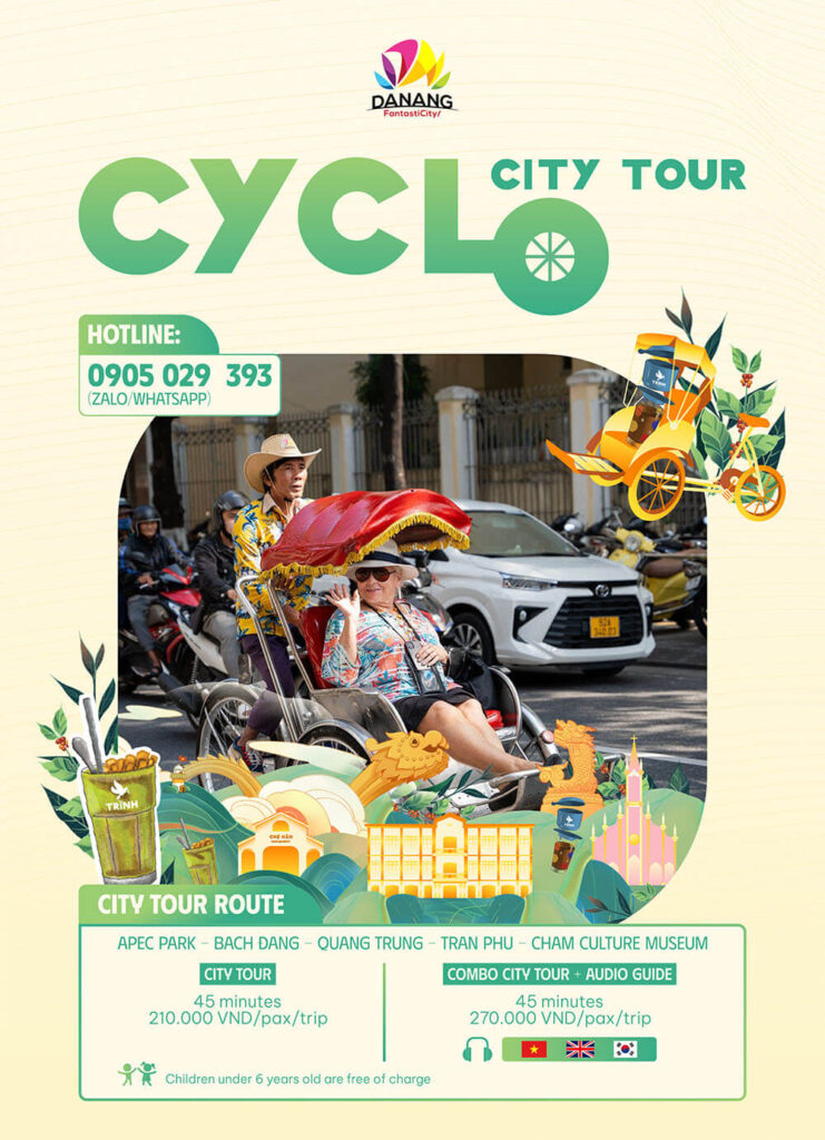 Khám phá Đà Nẵng theo cách thật riêng – chậm rãi, thư thái và đầy cảm xúc cùng tour xích lô độc đáo. Không còn tiếng ồn hay sự vội vã thường ngày, bạn sẽ được thả mình giữa nhịp sống bình yên của thành phố biển xinh đẹp. Chiếc xích lô quen thuộc và người tài xế Đà Nẵng thân thiện sẽ đưa bạn len qua từng góc phố, mở ra một hành trình đầy bất ngờ và đáng nhớ.