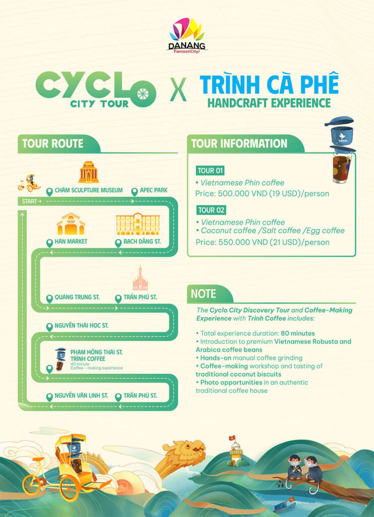 Ghi chú: Tour xích lô khám phá thành phố và trải nghiệm pha chế cùng cà phê Trình bao gồm: