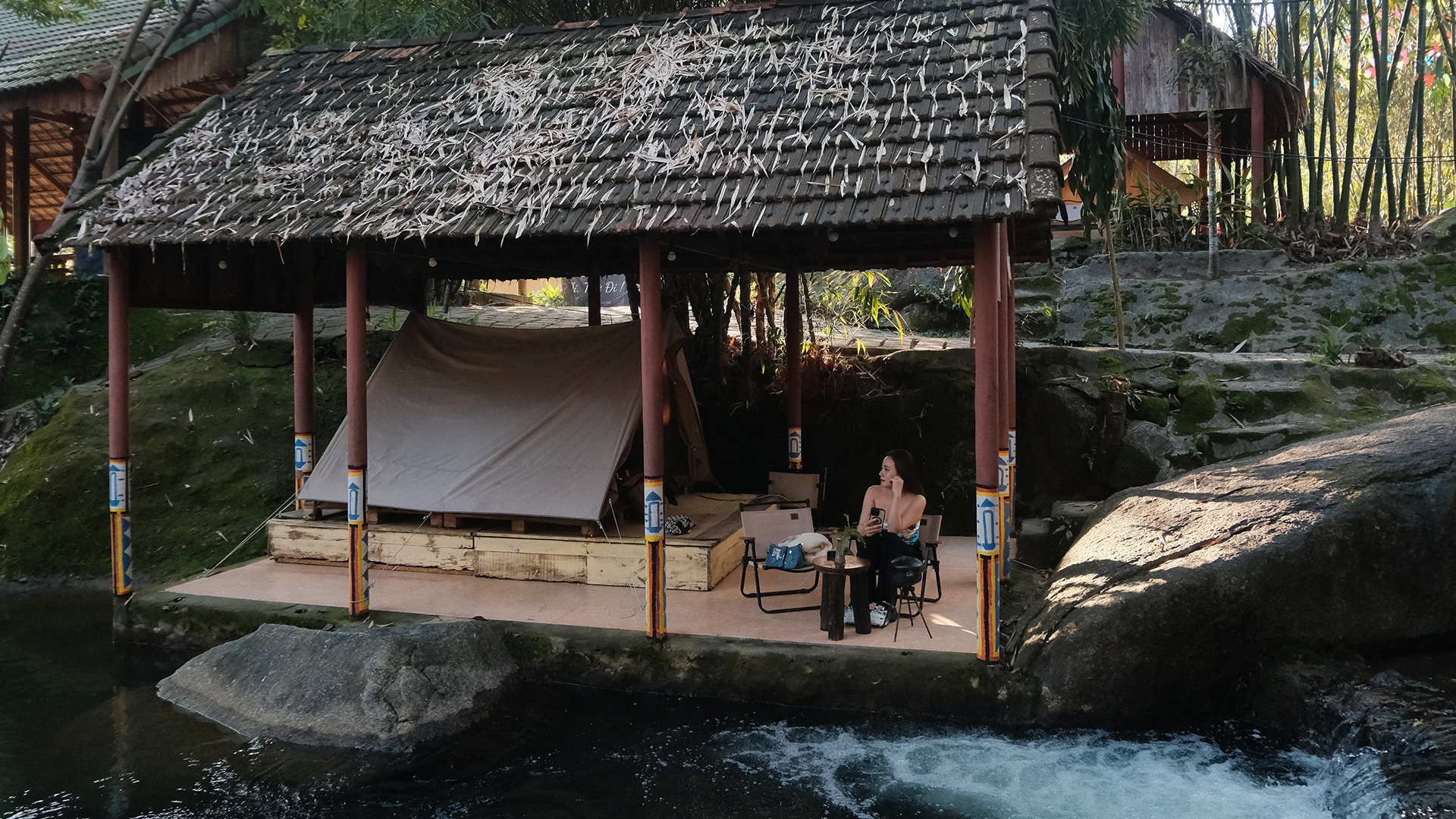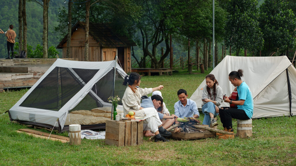 Hoặc chọn trải nghiệm gần gũi hơn với thiên nhiên như ngủ lều trên sân cỏ rộng dưới bầu trời đầy sao, hay thử lều vô cực với tầm nhìn mở ra triền núi. Đặc biệt nhất là lều ven suối – nơi bạn có thể nghe tiếng nước chảy suốt đêm, cảm nhận hơi mát tự nhiên len qua từng nhịp thở