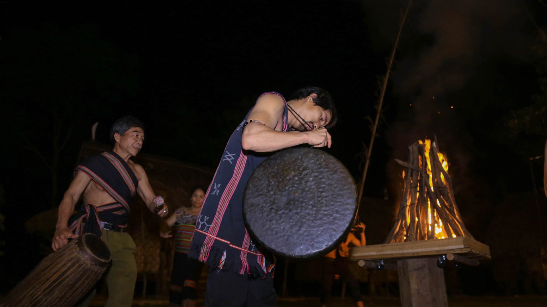 Khi màn đêm buông xuống, tiếng trống chiêng vang lên giữa không gian đại ngàn. Lửa được nhóm lên trong nghi thức Gọi Lửa/Cơ Tu Show, bắt đầu bằng những điệu múa tung tung da dá đầy nội lực kể về câu chuyện cội nguồn, về cảnh săn bắt hái lượm thời nguyên sơ.