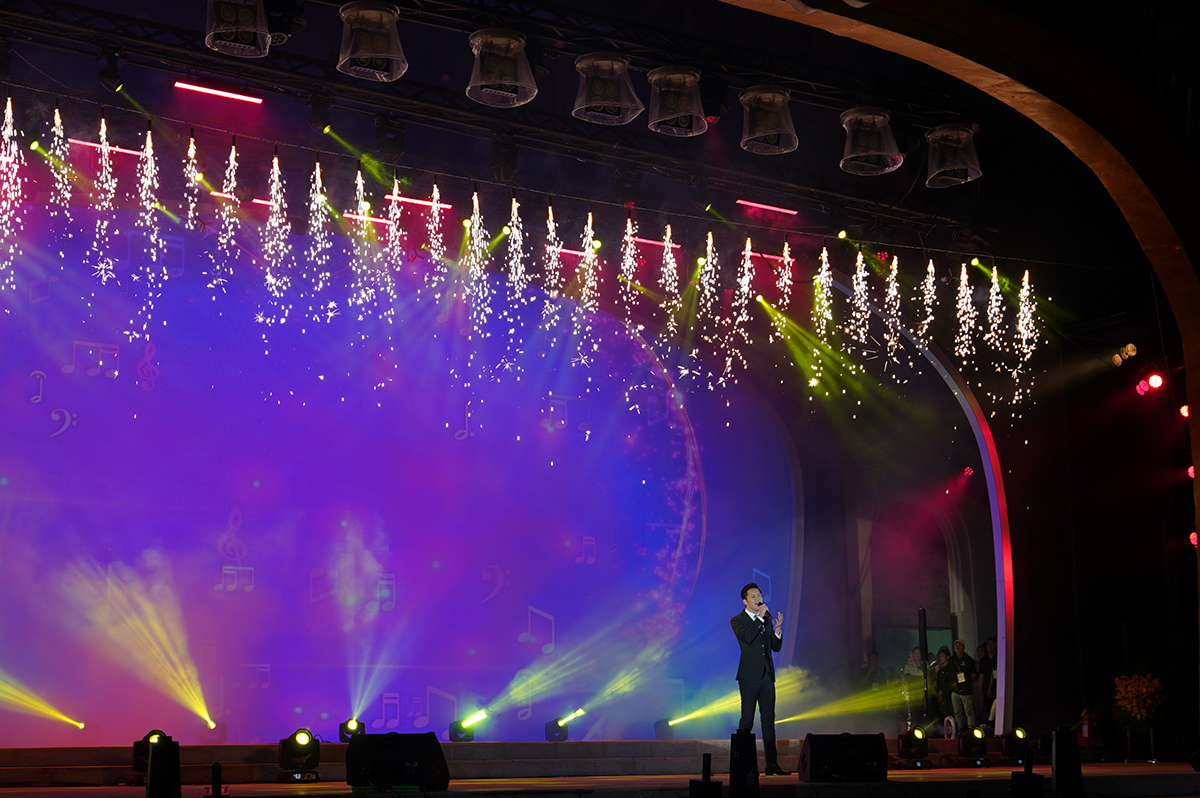 Sân khấu được trang bị hoành tráng, không gian trình diễn siêu ấn tượng, mang đậm hơi thở hiện đại với những màn hình led khổng lồ, dàn đèn siêu lung linh và hệ thống âm thanh khủng