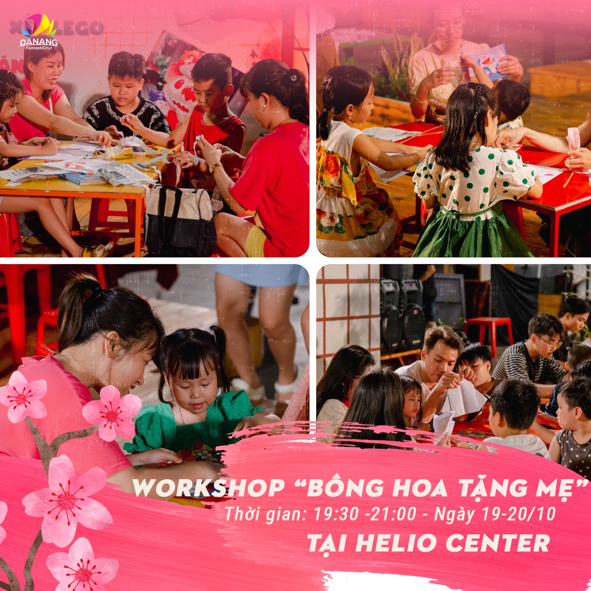 Chương trình sẽ bắt đầu từ 19h30 – 21h vào các ngày 19/10 – 20/10/2023 mỗi tối. Cả nhà nhớ lưu lại lịch hẹn để cùng tham gia chương trình workshop đầy ý nghĩa dịp lễ 20/10 này nha.