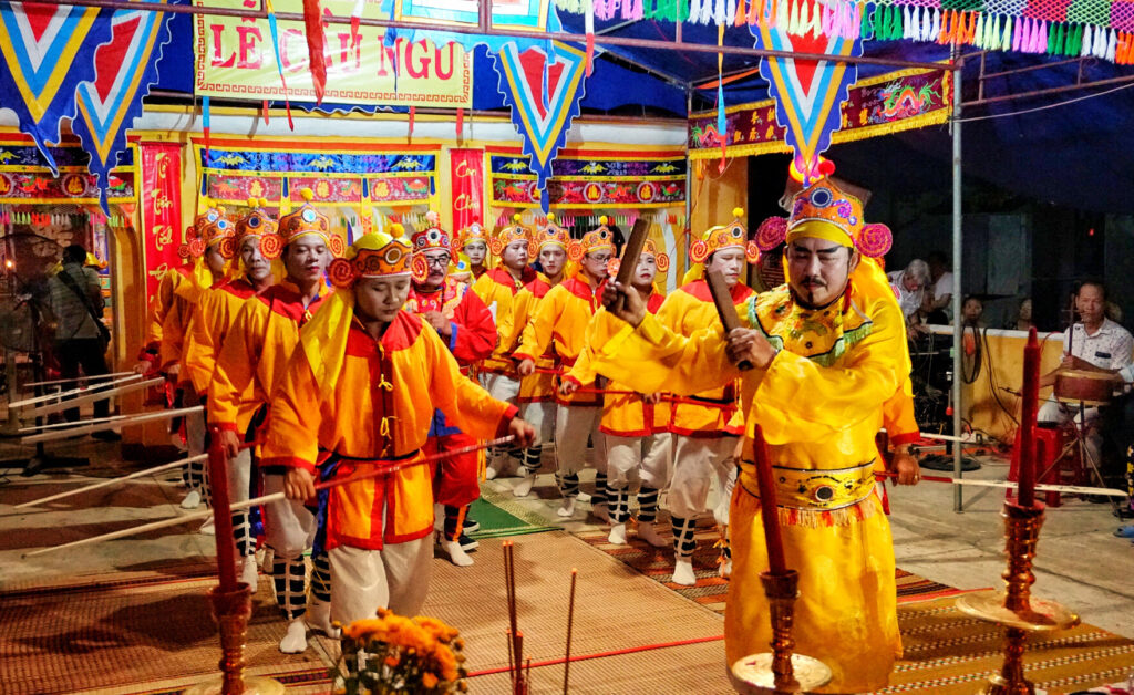 Và rồi, khi không gian lễ hội dần mở rộng, bạn sẽ thấy mình bước vào những trải nghiệm gần gũi hơn với đời sống ngư dân. Trong hai đêm 02 và 03/4/2026, vào lúc 19h00 tại Lăng Tiêu Diện, các buổi biểu diễn Tuồng sẽ đưa bạn đến với một không gian nghệ thuật rất riêng – nơi từng làn điệu, từng nhịp diễn tái hiện những câu chuyện văn hóa quen thuộc như một phần của đời sống thường nhật.