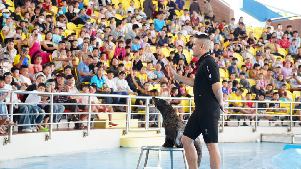 Hòa cùng nhịp sống năng động của thành phố biển, Danang Dolphinarium mang đến một tọa độ vui chơi – giải trí mới mẻ, trẻ trung và giàu năng lượng. Điểm nhấn nổi bật là Show “Vũ điệu Đại Dương” – chương trình biểu diễn cá heo và hải cẩu đầu tiên tại Đà Nẵng, kéo dài khoảng 35–40 phút, mang đến những màn trình diễn sinh động, kết hợp hài hòa giữa nghệ thuật, thiên nhiên và giáo dục, phù hợp với du khách ở mọi lứa tuổi.