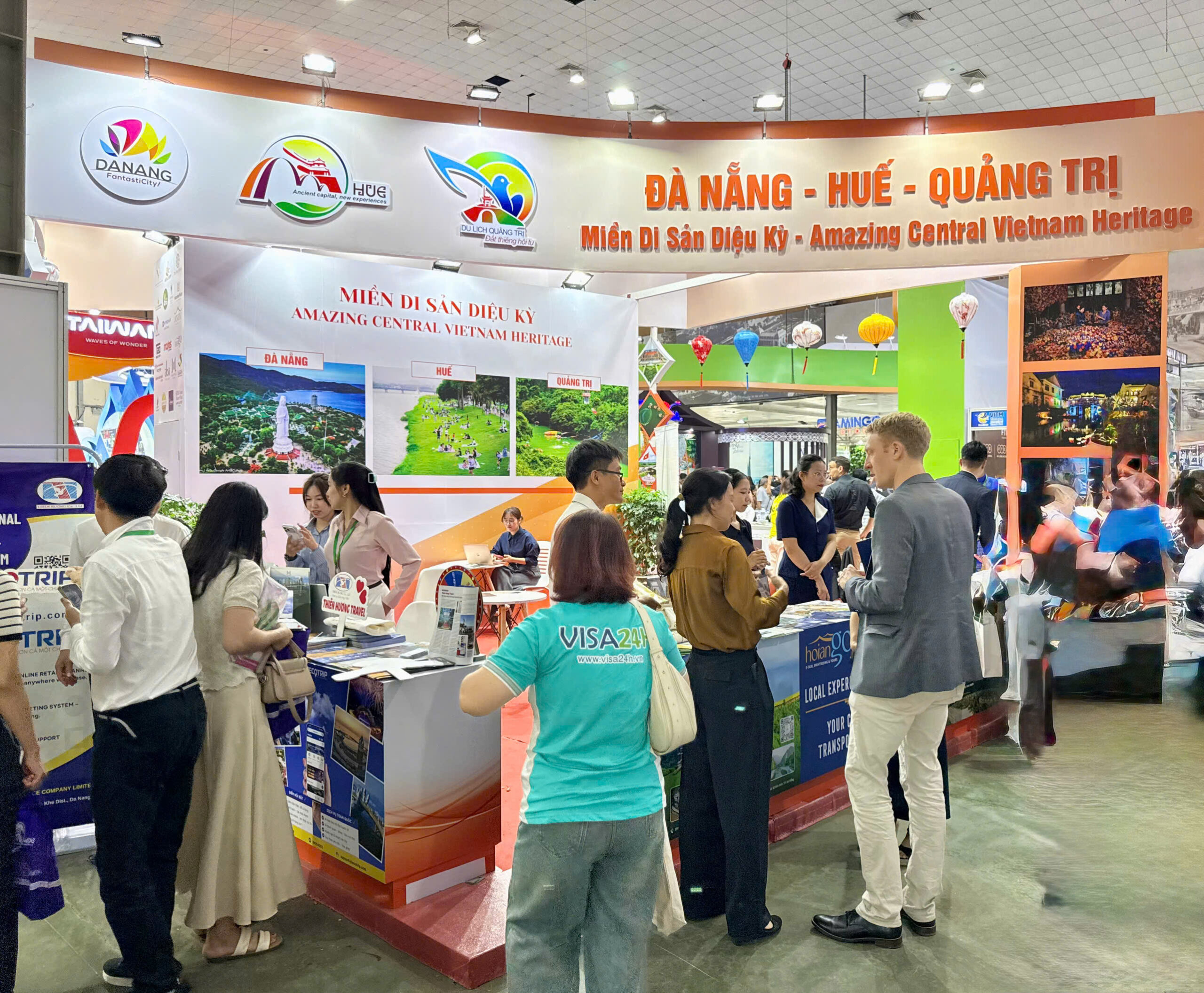 Trong không gian liên kết ba địa phương Đà Nẵng – Huế – Quảng Trị với quy mô 90m² tại khu A2, khu trưng bày du lịch Đà Nẵng trở thành điểm nhấn nổi bật tại HỘI chợ, khắc họa sinh động bức tranh điểm đến đa sắc của một Đà Nẵng mới sau sáp nhập. Nổi bật trong tổng thể gian hàng là chuỗi hoạt động trải nghiệm được xây dựng xuyên suốt theo thông điệp “Chạm về Nguyên bản”. Tại không gian “Chạm vị Đà Nẵng”, khách tham quan có dịp thưởng thức những hương vị đặc trưng của địa phương, trong khi đó, không gian “Chạm bản sắc” mở ra trải nghiệm nghệ thuật làm tranh mộc bản về điểm đến Đà Nẵng – một nét văn hóa độc đáo, góp phần tái hiện chiều sâu văn hoá và vẻ đẹp nguyên bản của điểm đến.