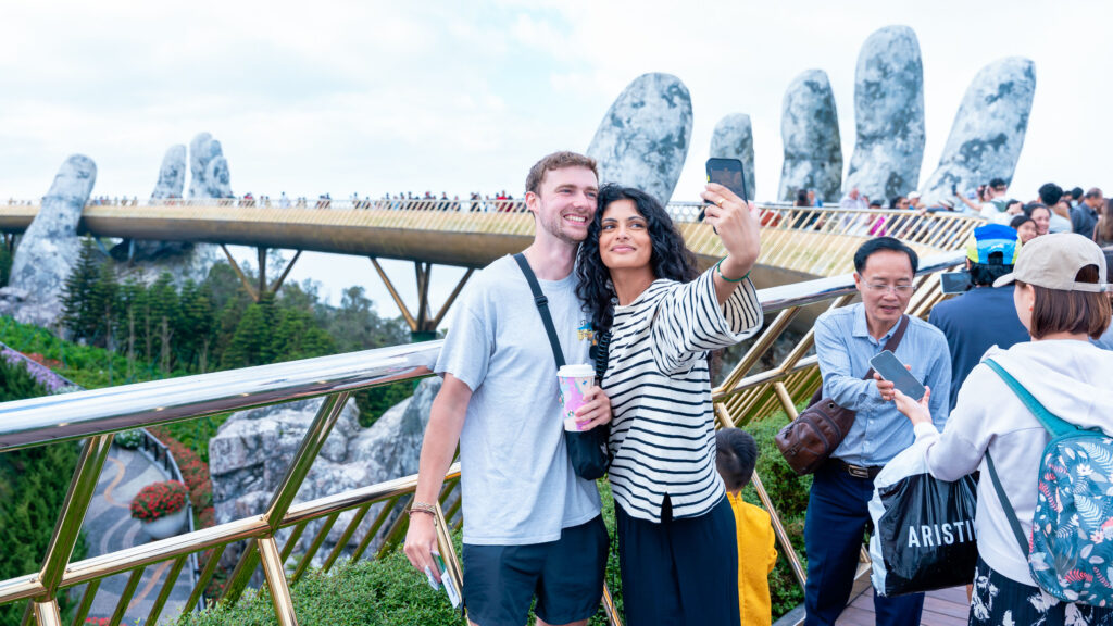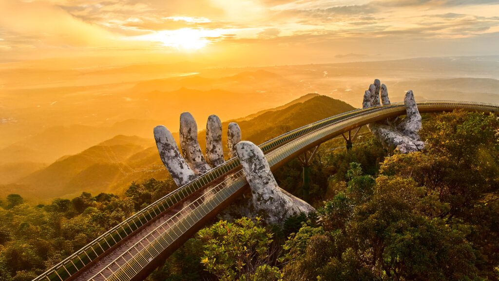 Giữa làn mây bồng bềnh, Cầu Vàng vẫn là điểm đến không thể bỏ lỡ. Vào những thời khắc giao giữa sáng sớm hoặc chiều muộn, khi ánh sáng dịu nhẹ và mây trôi chậm, nơi đây mang lại cảm giác vừa hùng vĩ vừa rất đỗi nên thơ – một khung cảnh khiến mỗi bức ảnh đều trở nên sống động và giàu cảm xúc.