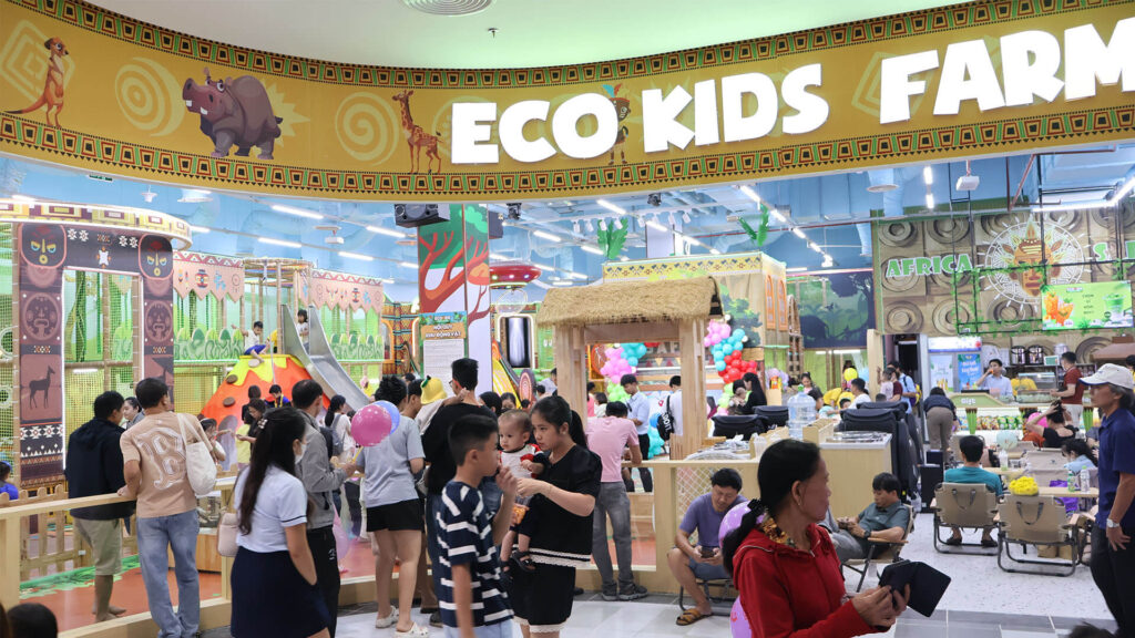 Công trình gồm ba tầng nổi, quy tụ gần 50 thương hiệu trong nước và quốc tế như Rạp chiếu phim CGV, Highlands Coffee, Phúc Long, Thai Siam Kitchen, Jollibee, Lotteria, Nhà sách Fahasa, Guardian, Oh!Some, Mr. DIY… kết hợp đại siêu thị, khu ẩm thực, và khu vui chơi giải trí rộng hàng nghìn m², mang đến trải nghiệm “tất cả trong một” cho khách hàng địa phương và du khách.