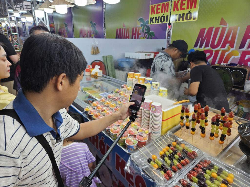Du khách ghi lại hình ảnh tại gian hàng kem khói và các món tráng miệng