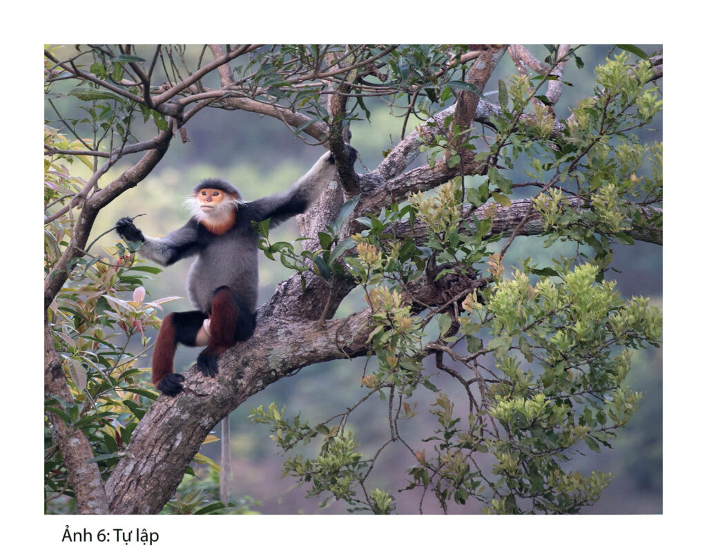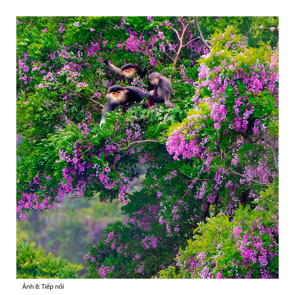 Qua ống kính nhiếp ảnh, hình ảnh voọc chà vá hiện lên rất gần: ánh nhìn của con non bên mẹ, dáng đứng lặng lẽ giữa tán rừng, hay bước nhảy đầy bản năng qua những tán cây già. Mỗi khuôn hình là một lát cắt tinh tế về mối quan hệ giữa thiên nhiên và con người – nơi ranh giới giữa bảo tồn và phát triển luôn cần được gìn giữ bằng sự thấu hiểu và trách nhiệm.