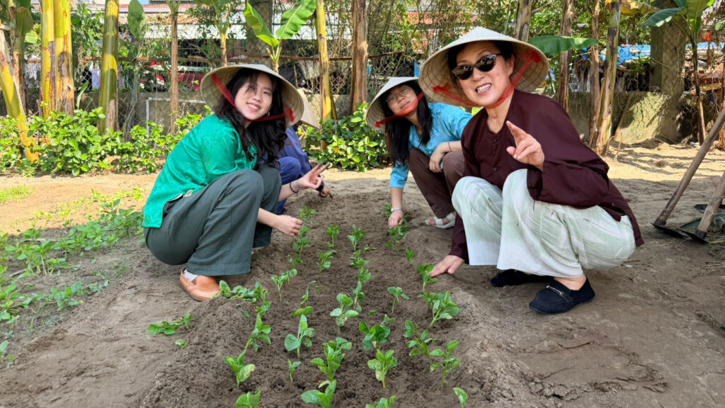 Trước khi bữa ăn bắt đầu, du khách có thể dạo bước qua những khu vườn rau xanh mướt, tìm hiểu cách trồng và chăm sóc rau theo phương pháp truyền thống, hay trực tiếp thu hoạch rau để chuẩn bị cho bữa ăn của mình. Những trải nghiệm nhỏ ấy khiến mỗi bữa ăn trở nên ý nghĩa hơn, khi du khách hiểu rằng hương vị của món ăn bắt đầu từ đất và từ bàn tay của người nông dân.