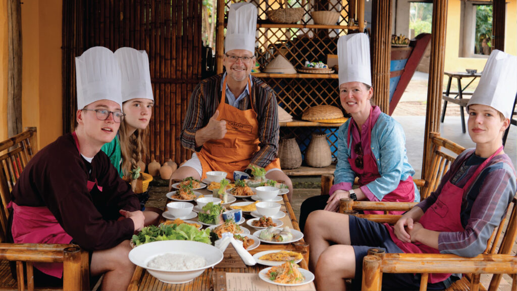 Hành trình ấy không chỉ dừng lại ở việc thưởng thức món ăn. Du khách có thể đạp xe qua những con đường làng rợp bóng tre, câu cá bên bờ sông, thu hoạch rau trong vườn hay cùng gia đình địa phương chuẩn bị bữa tối. Những khoảnh khắc giản dị ấy mang lại cảm giác thân thuộc – như khi người lữ khách tạm thời trở thành một phần của cuộc sống nơi đây.