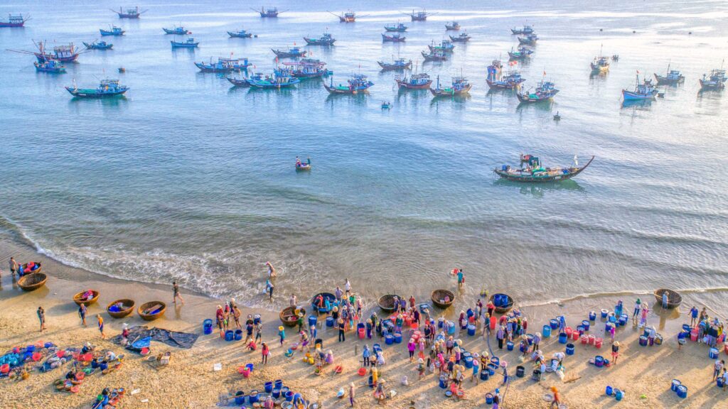 Đi giữa khu chợ buổi sớm, du khách có thể cảm nhận rõ ràng nhịp sống của làng chài: từ những người ngư dân vừa trở về sau đêm dài trên biển, đến những người buôn bán đang lựa chọn từng mẻ hải sản tươi nhất cho bữa ăn trong ngày. Đó là nơi mà ẩm thực bắt đầu từ biển, từ những con cá còn ánh bạc, những con tôm vừa được kéo lưới lên, hay những rổ mực tươi còn đẫm vị muối của đại dương.